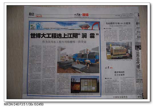 以下為江陰日報對世博會采購我司產(chǎn)優(yōu)質(zhì) 潤霖玻璃鋼格柵做的相關專題報道